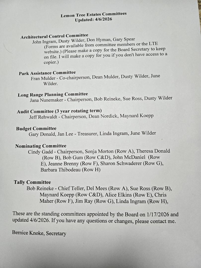 Block B: Theresa Donald B-06 Alt: Cindy Gadd B-02